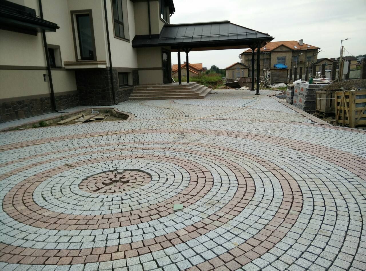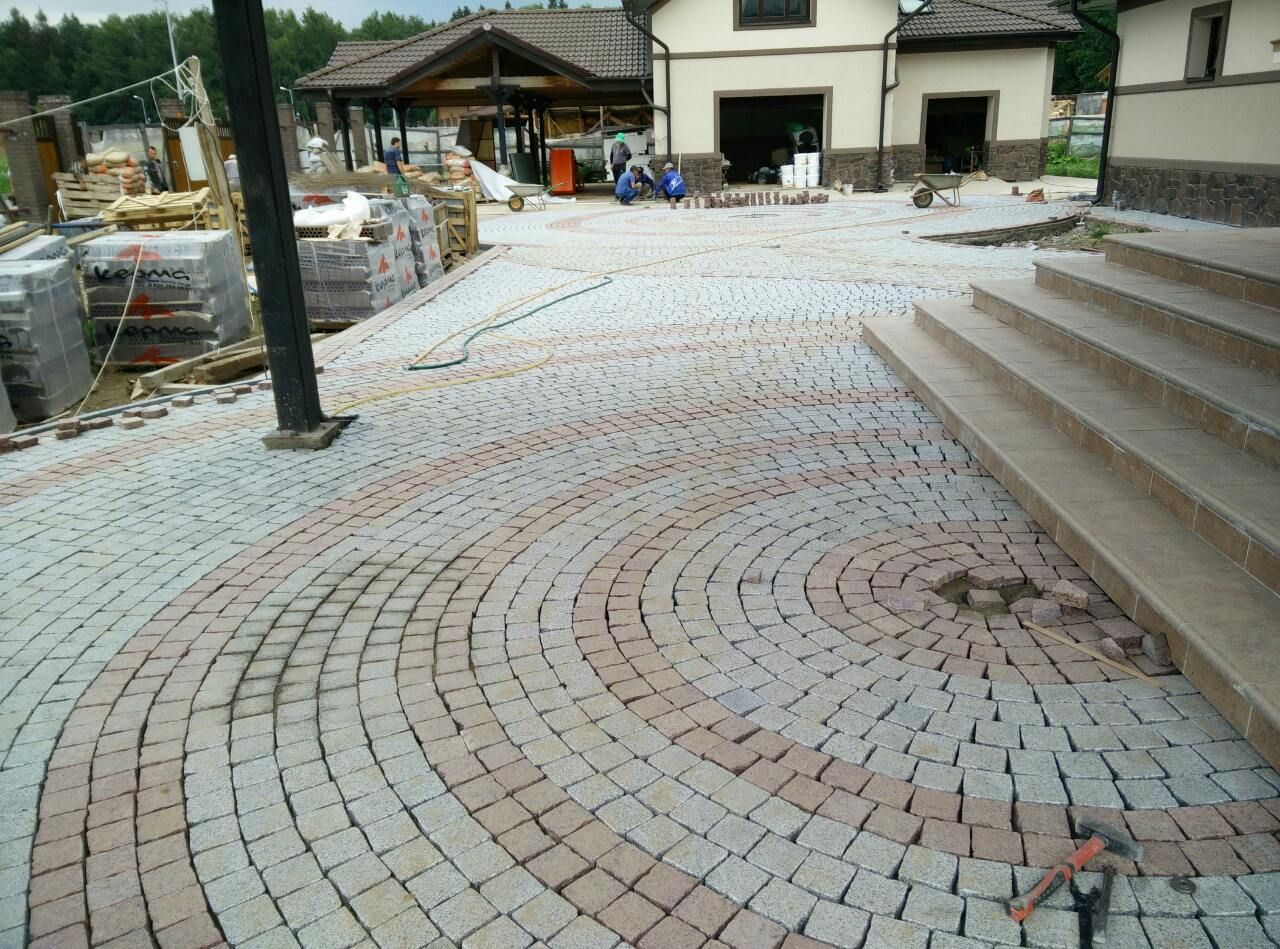 Круговая укладка брусчатки КП Аврора
